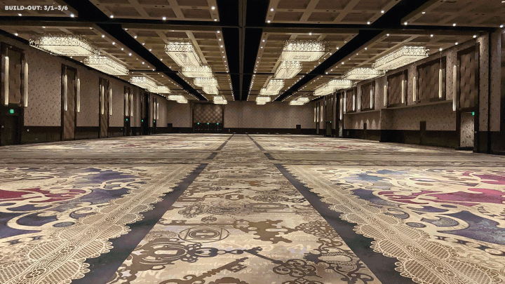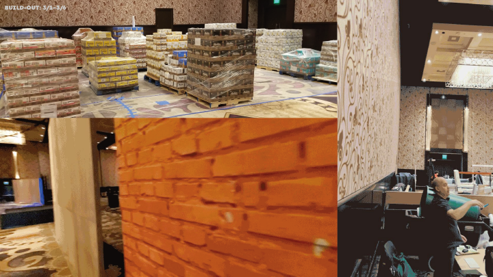 After design approval, it was time to make it happen. A week of non stop work turning an empty ballroom into a massive portfolio showcase.